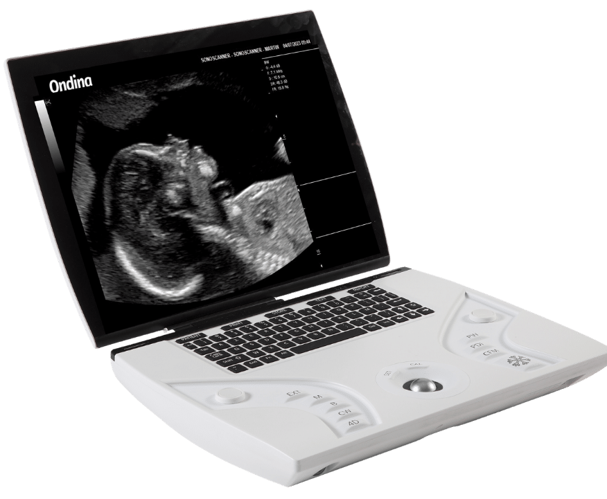 The Ondina console is particularly suited for high-level obstetric work, offering the image depth and advanced measurement tools necessary for detailed fetal biometry and morphological assessments.