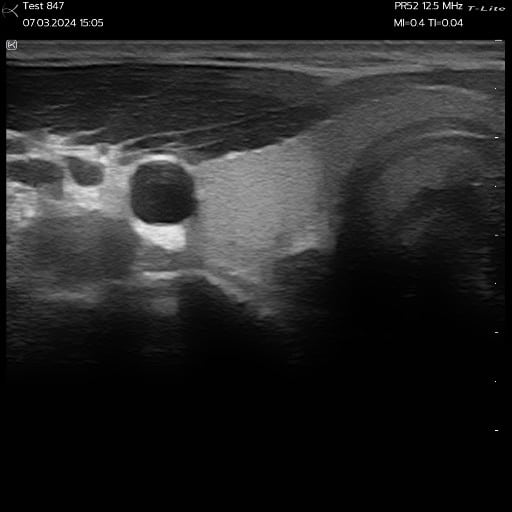 - L’accumulation de liquide constitue la première cause d’hypoéchogénicité. Les kystes simples, remplis de liquide séreux, absorbent une grande partie des ultrasons au lieu de les réfléchir. Cette absorption crée l’aspect sombre caractéristique des collections liquidiennes ;