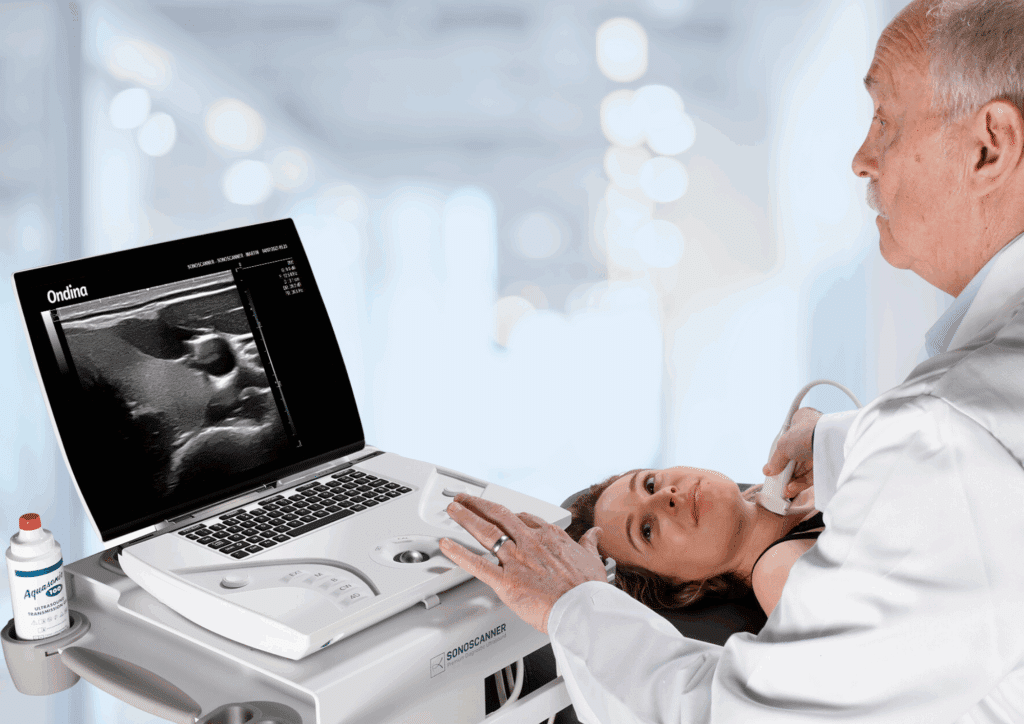 L’échographe Ondina offre une qualité d’image exceptionnelle pour l’exploration thyroïdienne, permettant de détecter avec précision les nodules et de bénéficier d’une classification automatique selon la grille EU-TIRADS, grâce à son intelligence artificielle intégrée. Compact, léger et autonome, il accompagne les endocrinologues au quotidien, en cabinet comme en mobilité, pour un diagnostic rapide, fiable et au plus près du patient.